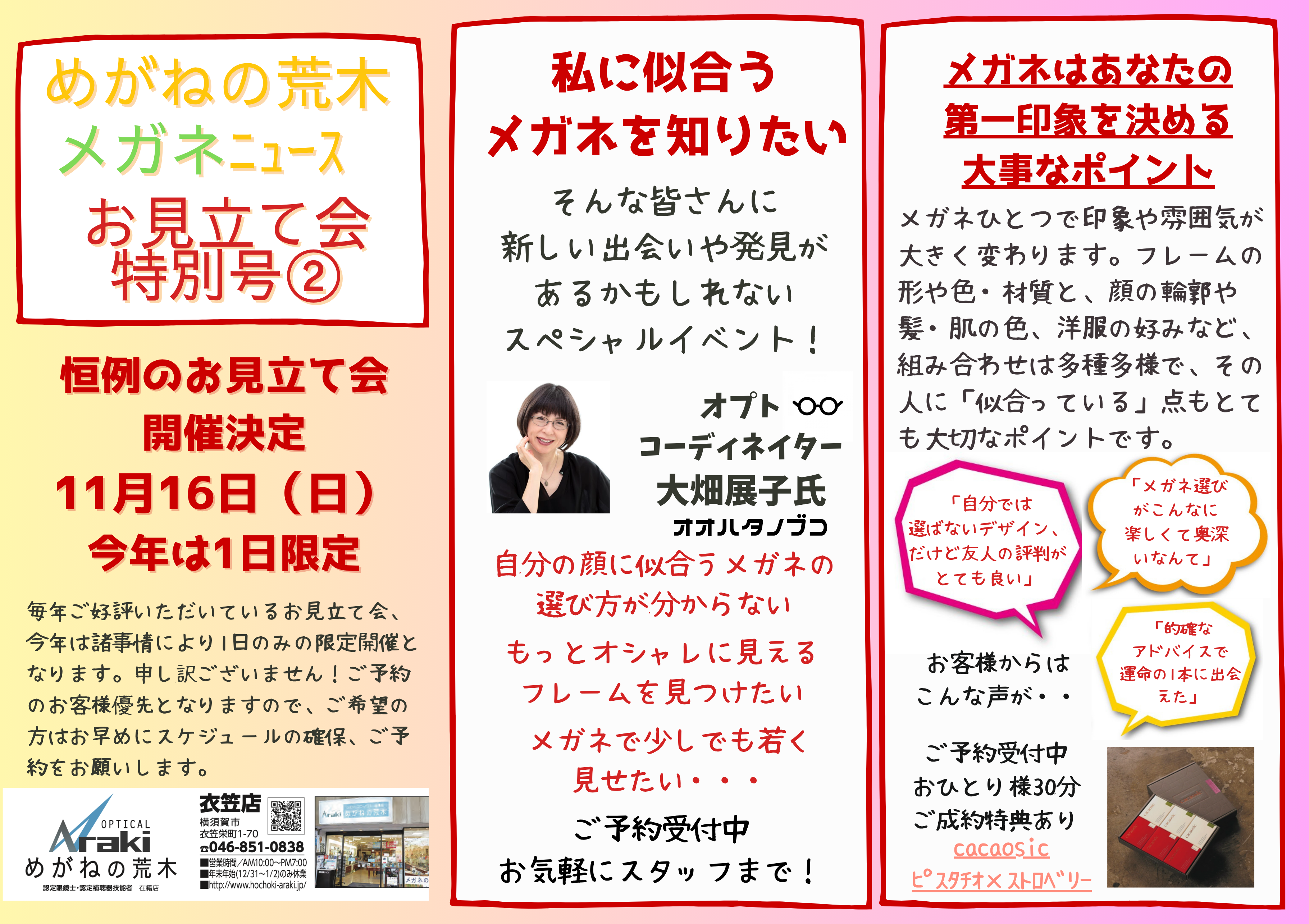 アットホームな雰囲気で、気軽に立ち寄れる眼鏡店を目指しています。