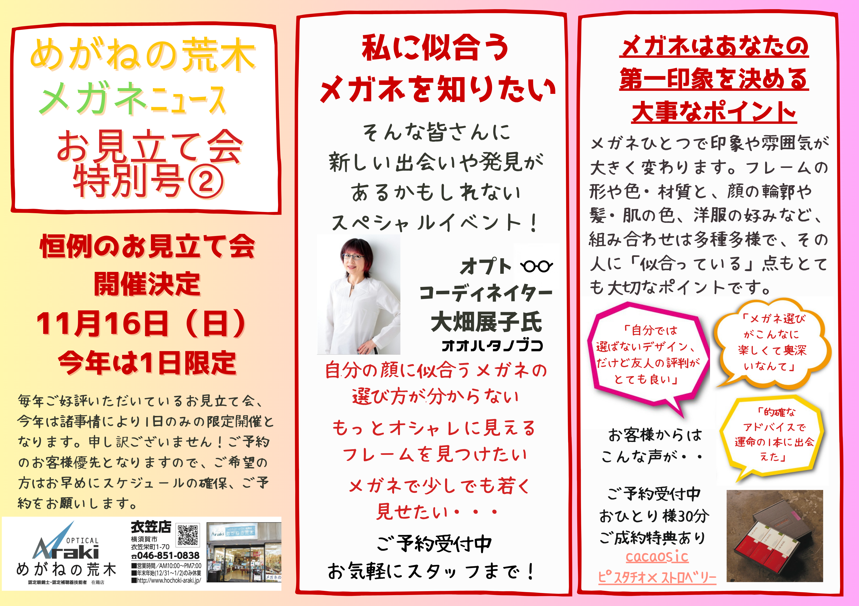 先週の土日、16日17日は「貴方だけのメガネお見立て会」でした。