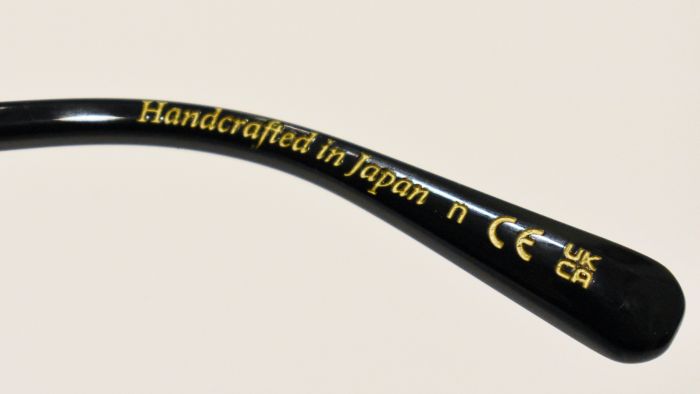 写真ではわかりにくいですが、特徴はアセテートフレーム外側のエッジの効いたフロント。