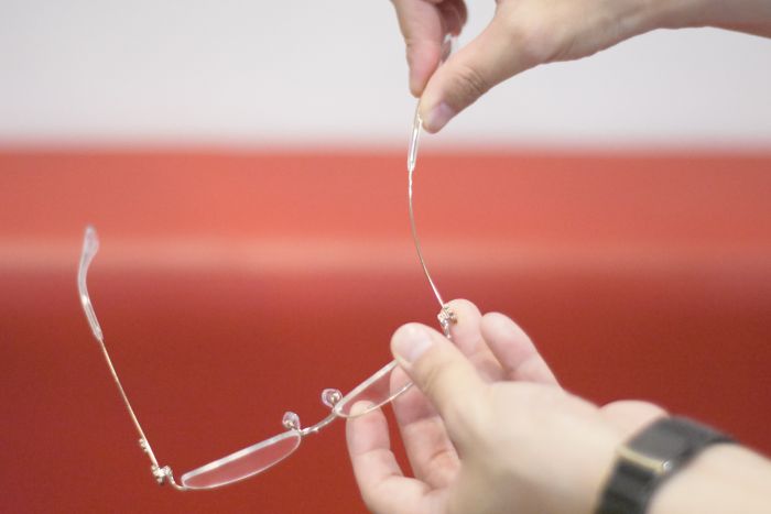 こちらのフレームは一見、細身で心配になる方もいるかと思いますが、形状記憶合金を使用しており、しなりがあり掛け心地が良いのもオススメの理由です。