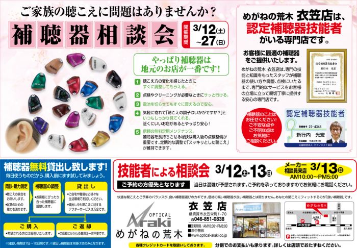 今月のめがねの荒木は、全店で『補聴器相談会』を開催いたします。