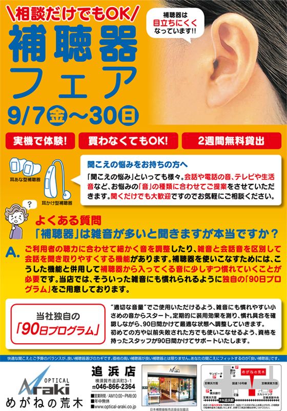 9月7日(金)から30日(日)まで【秋の補聴器フェア】を開催します!